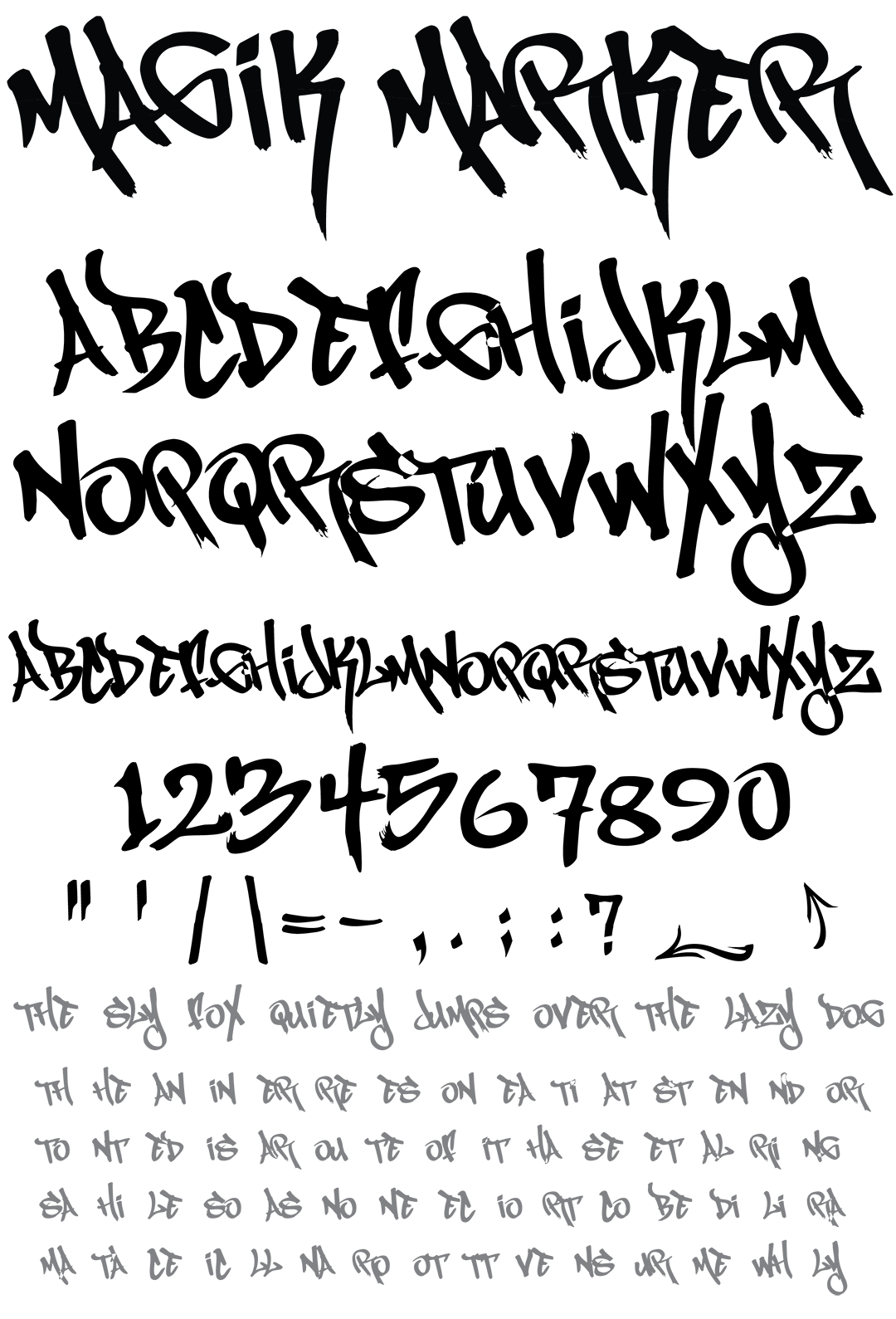 This irregular tag style was meant to have a childish or "toy" graffiti flavor. The letters were written out with a blunt "magic marker". 88 characters In all.